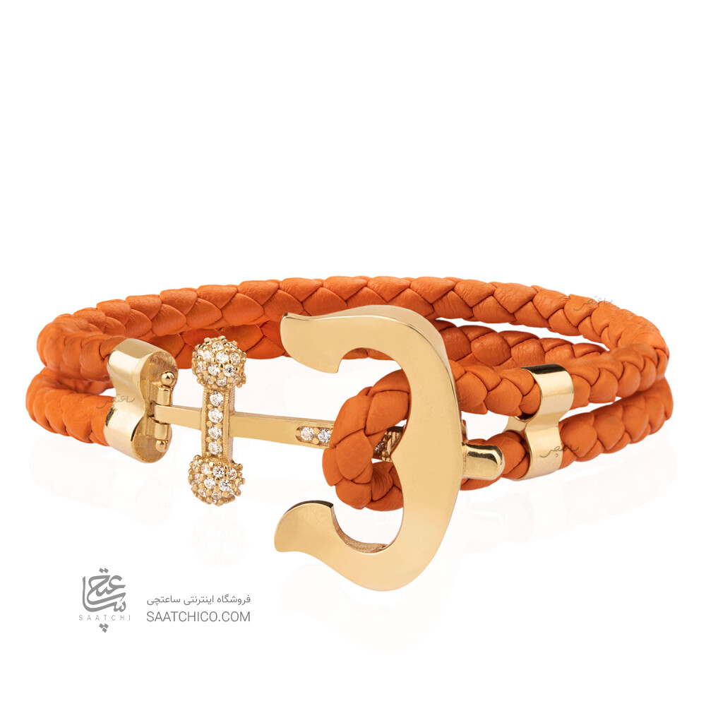 دستبند چرم با پلاک طلا طرح لنگر کد XB685